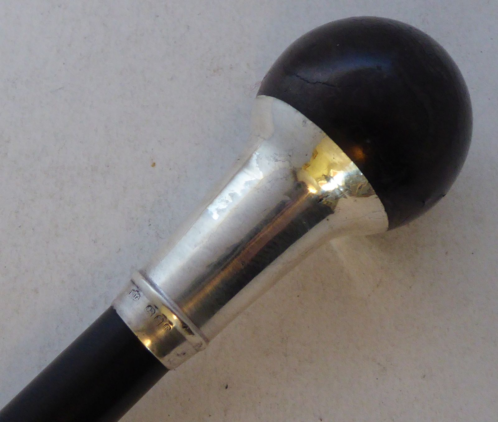 Undertakers Walking Stick Cane 1923 with Hallmarked Silver Collar Ebony Wood Shaft