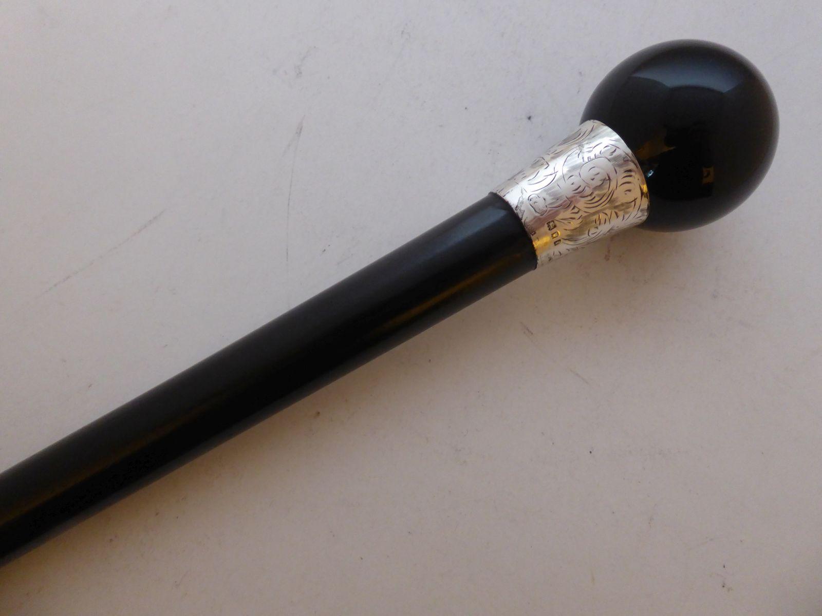 Undertakers Walking Stick Cane 1924 Hallmarked Solid Silver Pommel Ebony Shaft
