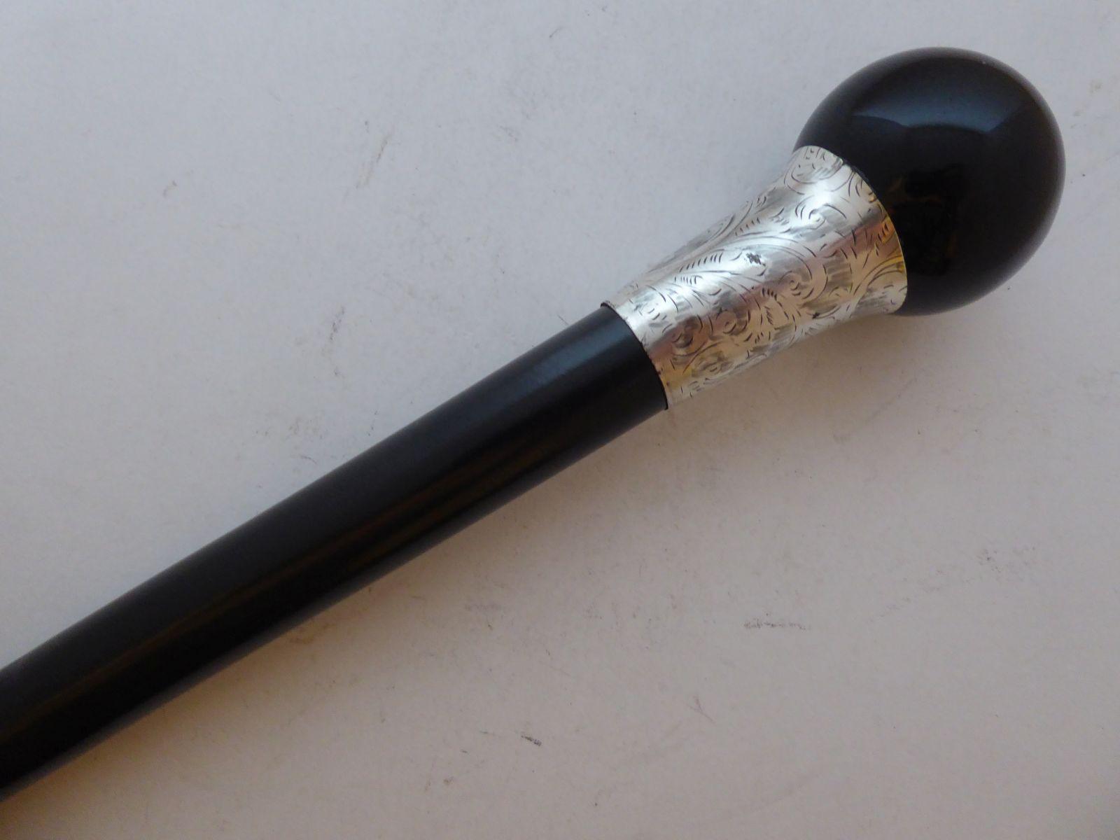 Undertakers Walking Stick Cane 1925 Hallmarked Solid Silver Pommel Ebony Shaft