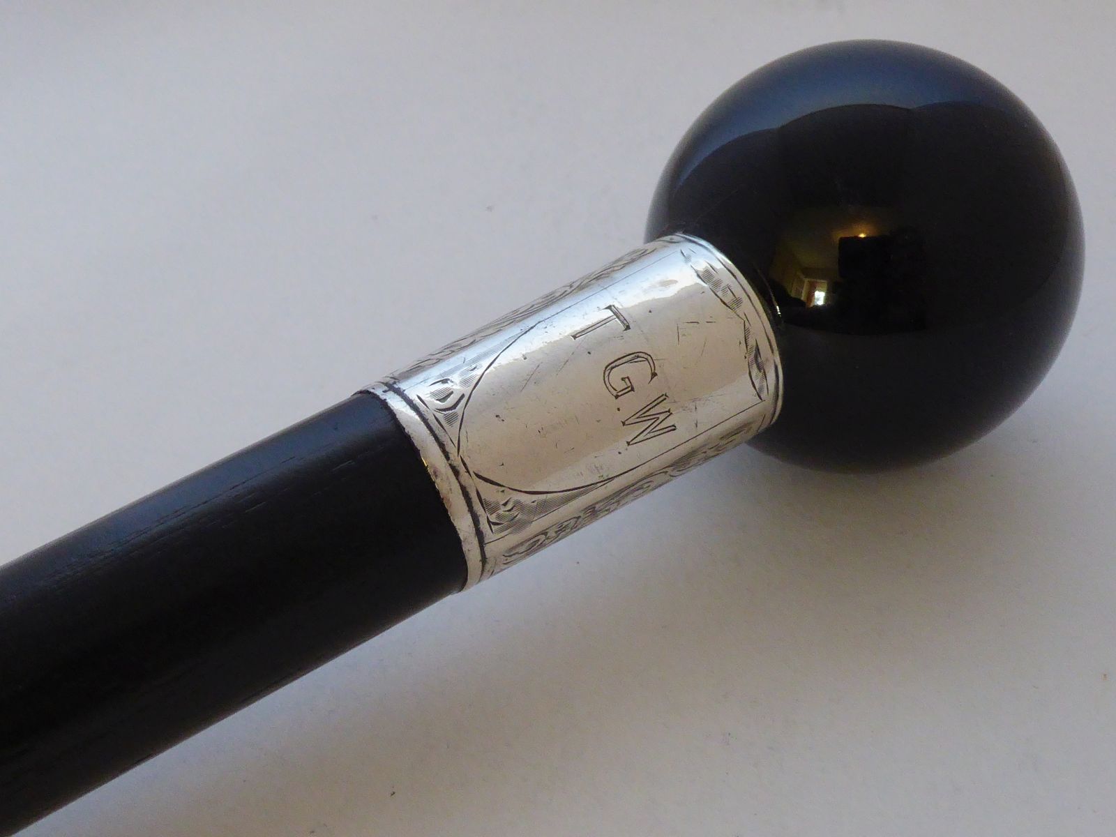 Undertakers Walking Stick Cane 1927 Hallmarked Solid Silver Pommel Ebony Shaft