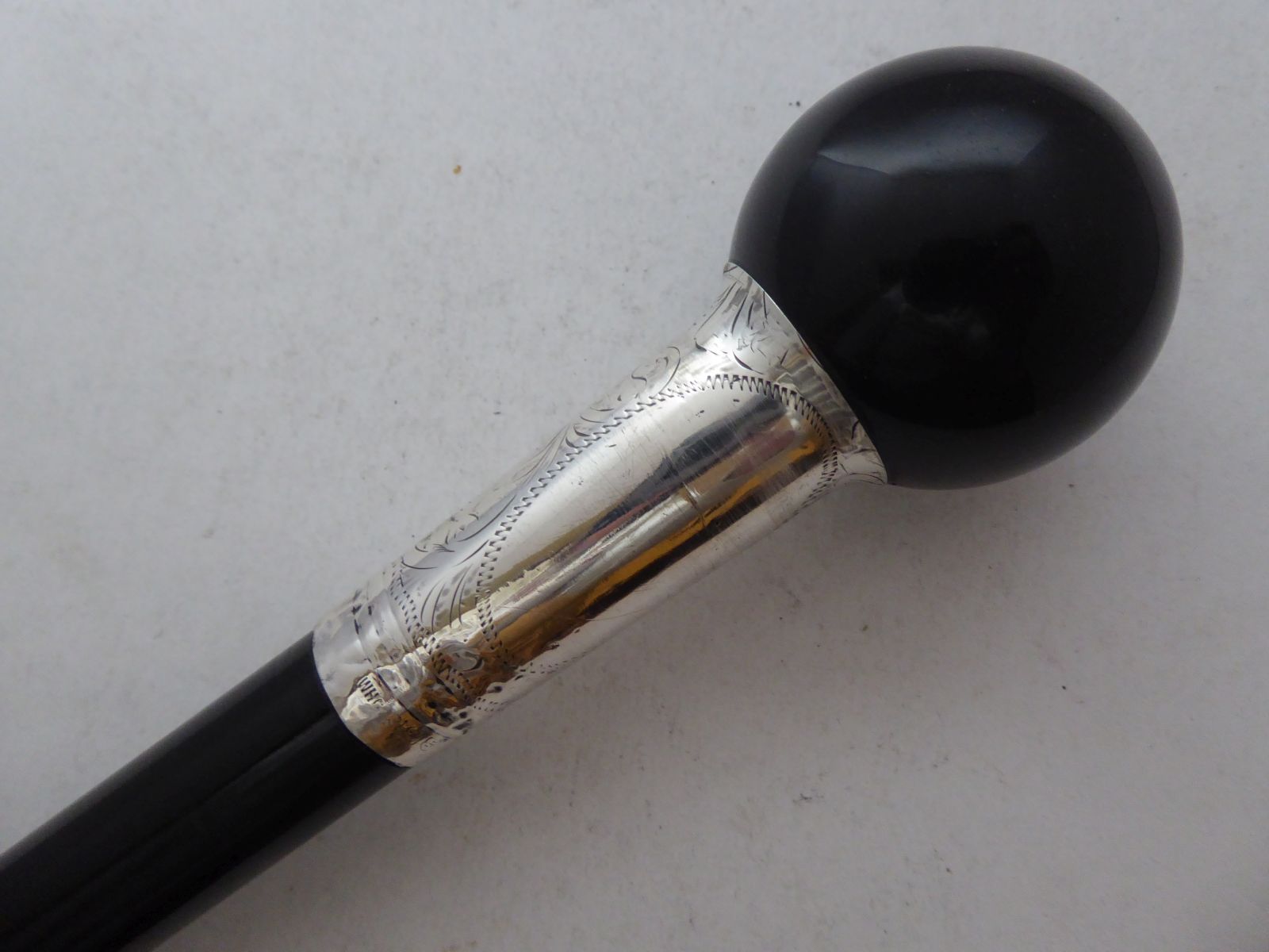 Undertakers Walking Stick Cane Hallmarked Solid Silver Ebony Wood Shaft 1917