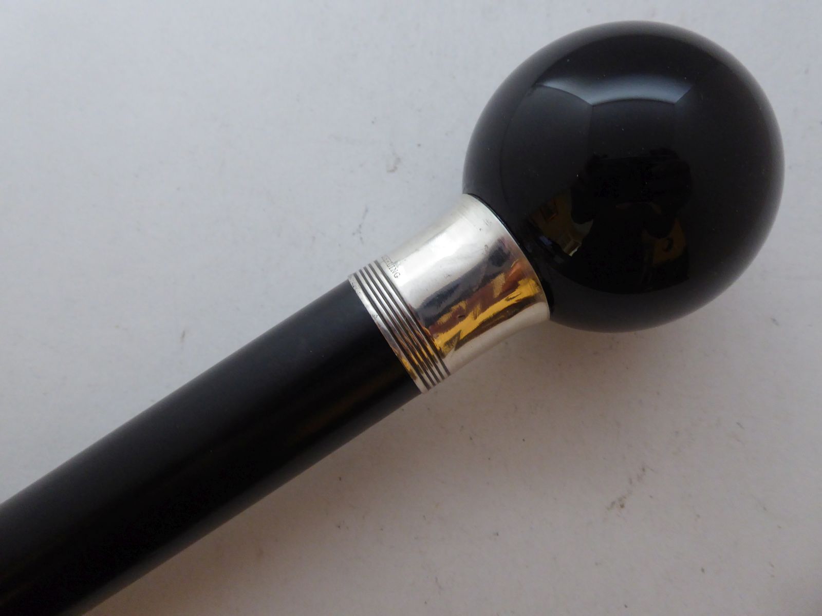 Undertakers Walking Stick Cane Sterling Silver Ebonised Shaft Obsidian Pommel c.1900