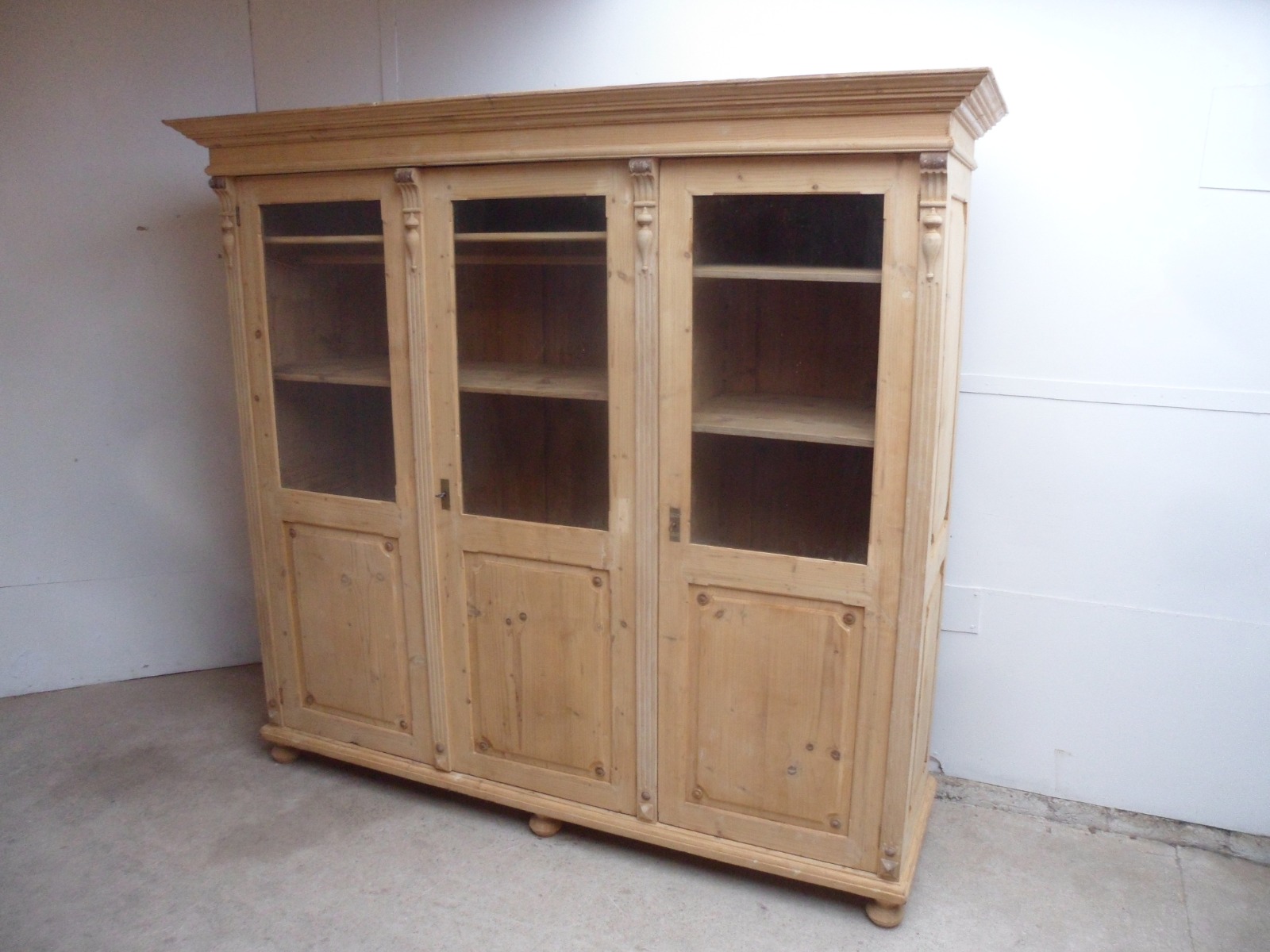 Unique Old Pine 3 Door Glazed Knockdown Dresser to wax / paint