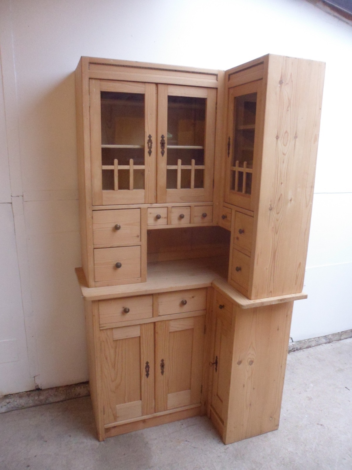 Unique / Unusual Old Pine 2 Piece Corner Kitchen Dresser to wax / paint