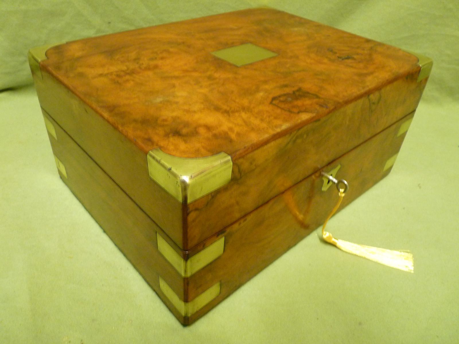 Unisex Brass Bound Burr Walnut Jewellery Box + Tray