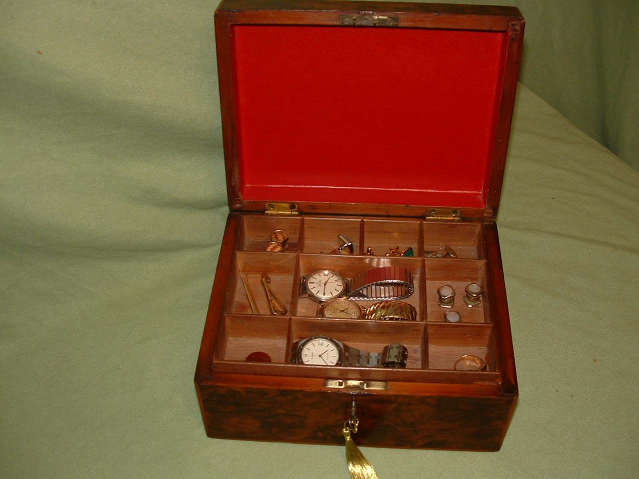 Unisex Burr Walnut Jewellery Box + Tray c.1875