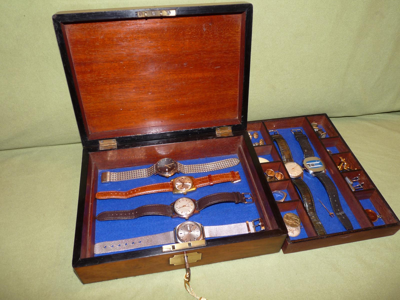 Unisex Inlaid Figured Walnut Jewellery Box + Tray c.1875