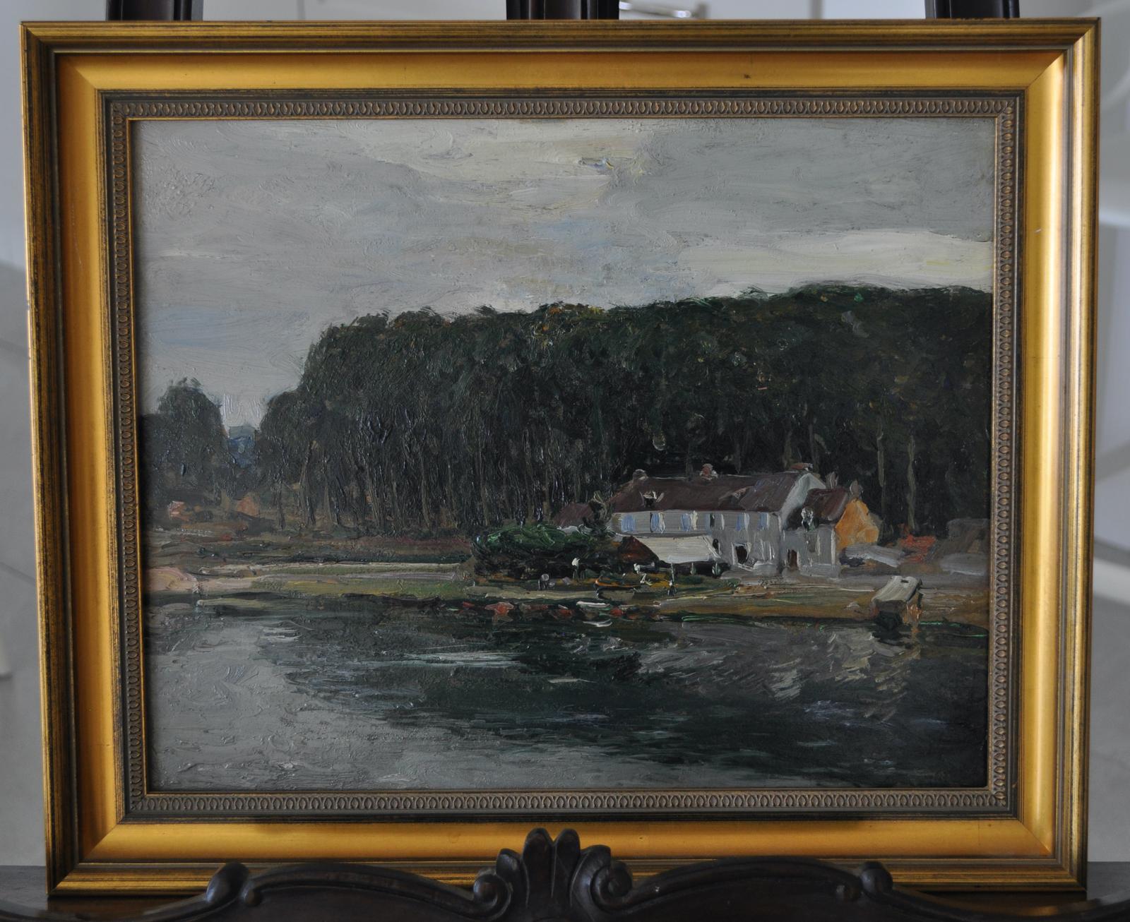 Unsigned Oil on Board by Alexander Jamieson (1873-1937), Village on the Seine