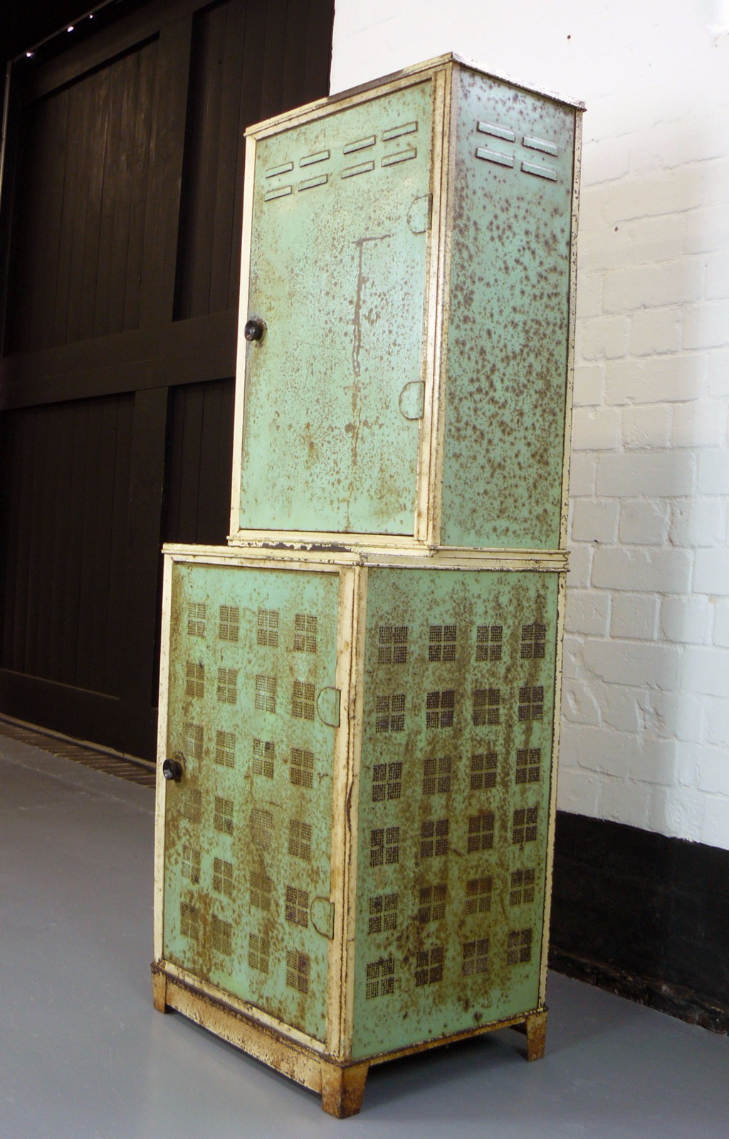 Untouched British Vintage Painted Two Tier Metal Cabinet c.1940