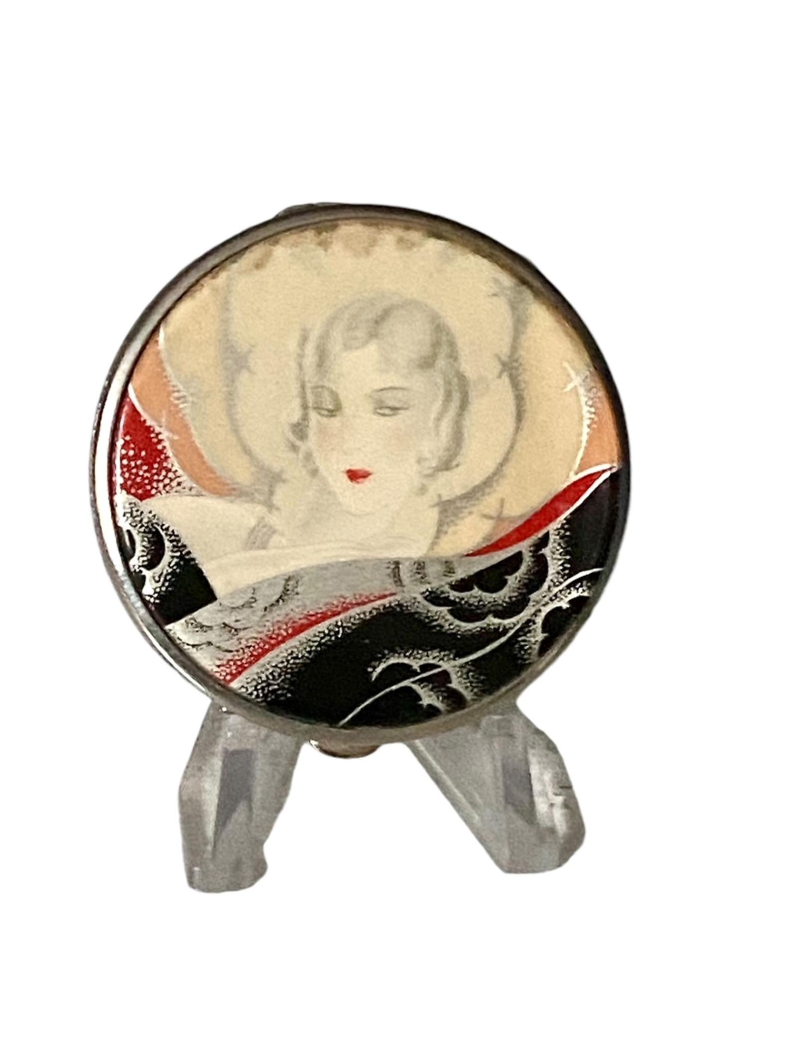 Unused Art Deco Atkinsons Flapper Lady Powder Compact Circa 1930