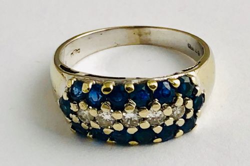 Unusual 18ct White Gold Double Row Sapphire & Single Row Diamond Ring Size N1/2