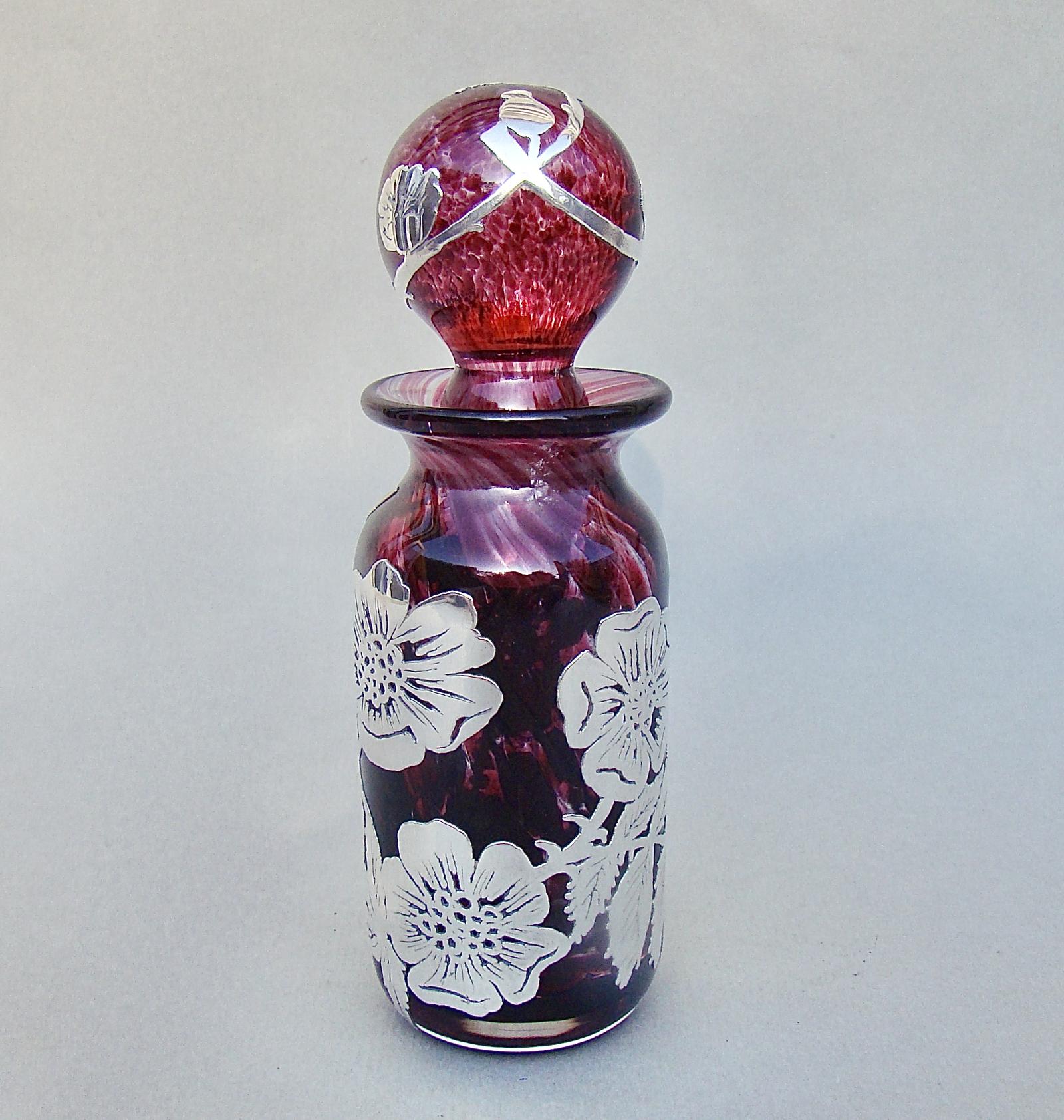 Unusual 20th Century Overlay Silver & Art Glass Scent Bottle c.1960