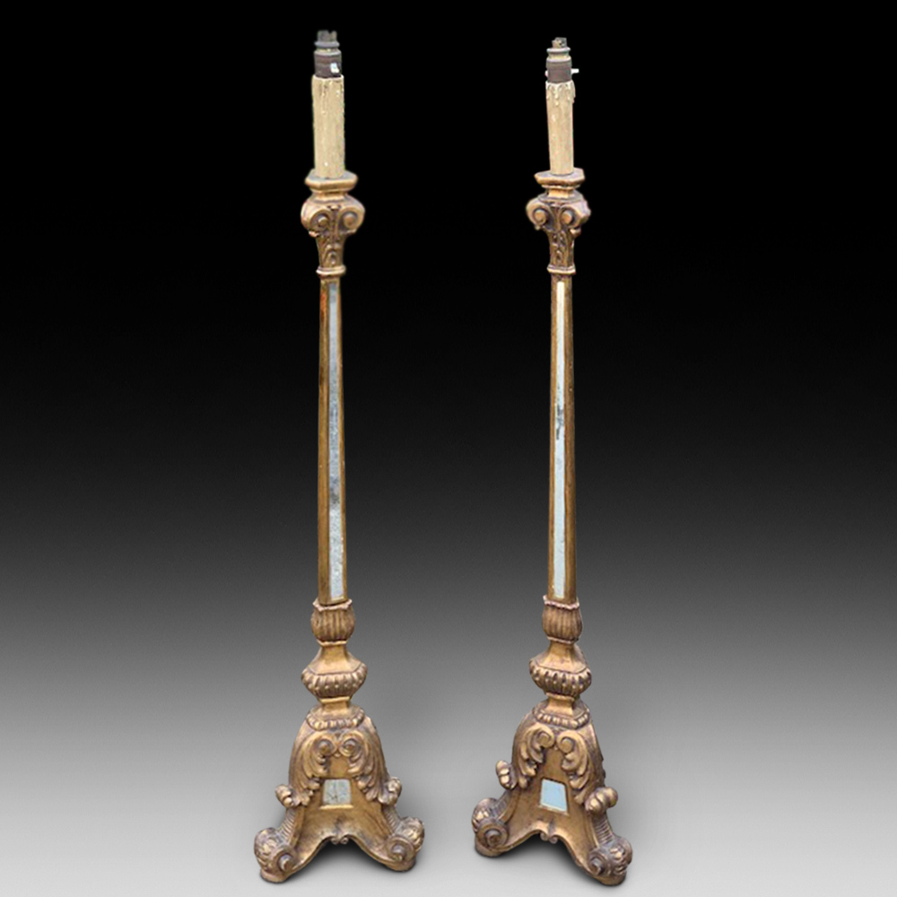 Unusual and Very Attractive Pair of Gilt Lamps, Ca. 1840-60