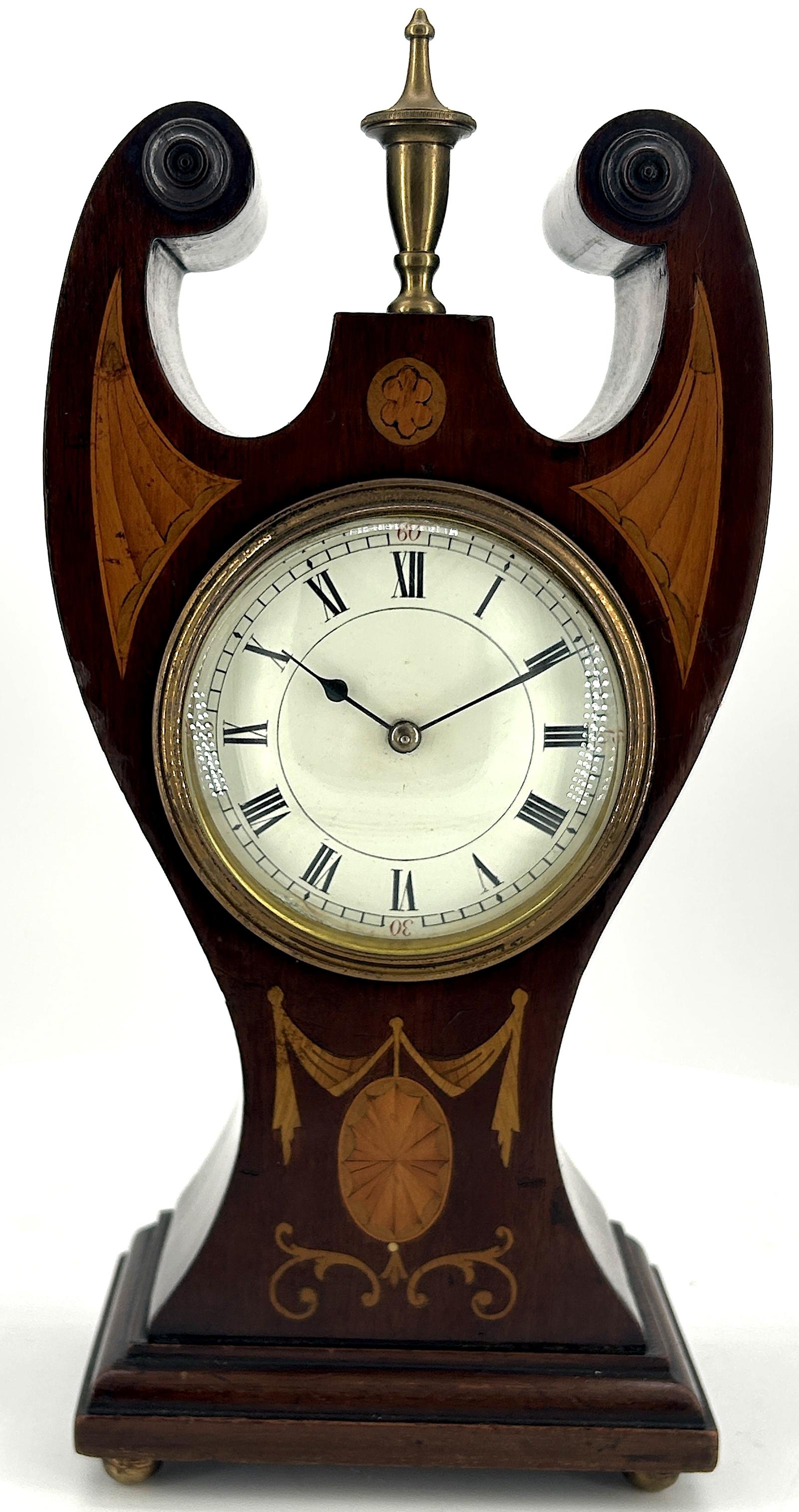 Unusual Antique Edwardian Inlaid Mahogany Mantel Clock c.1905