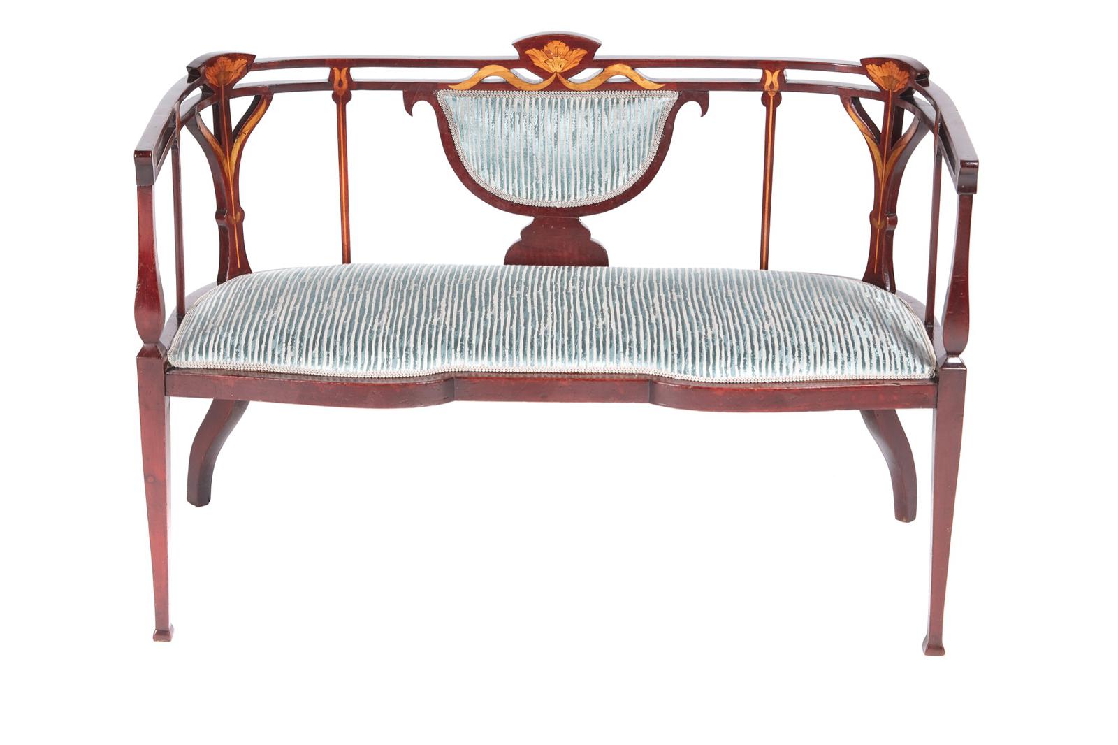 Unusual Antique Edwardian Inlaid Mahogany Settee (1 of 12)