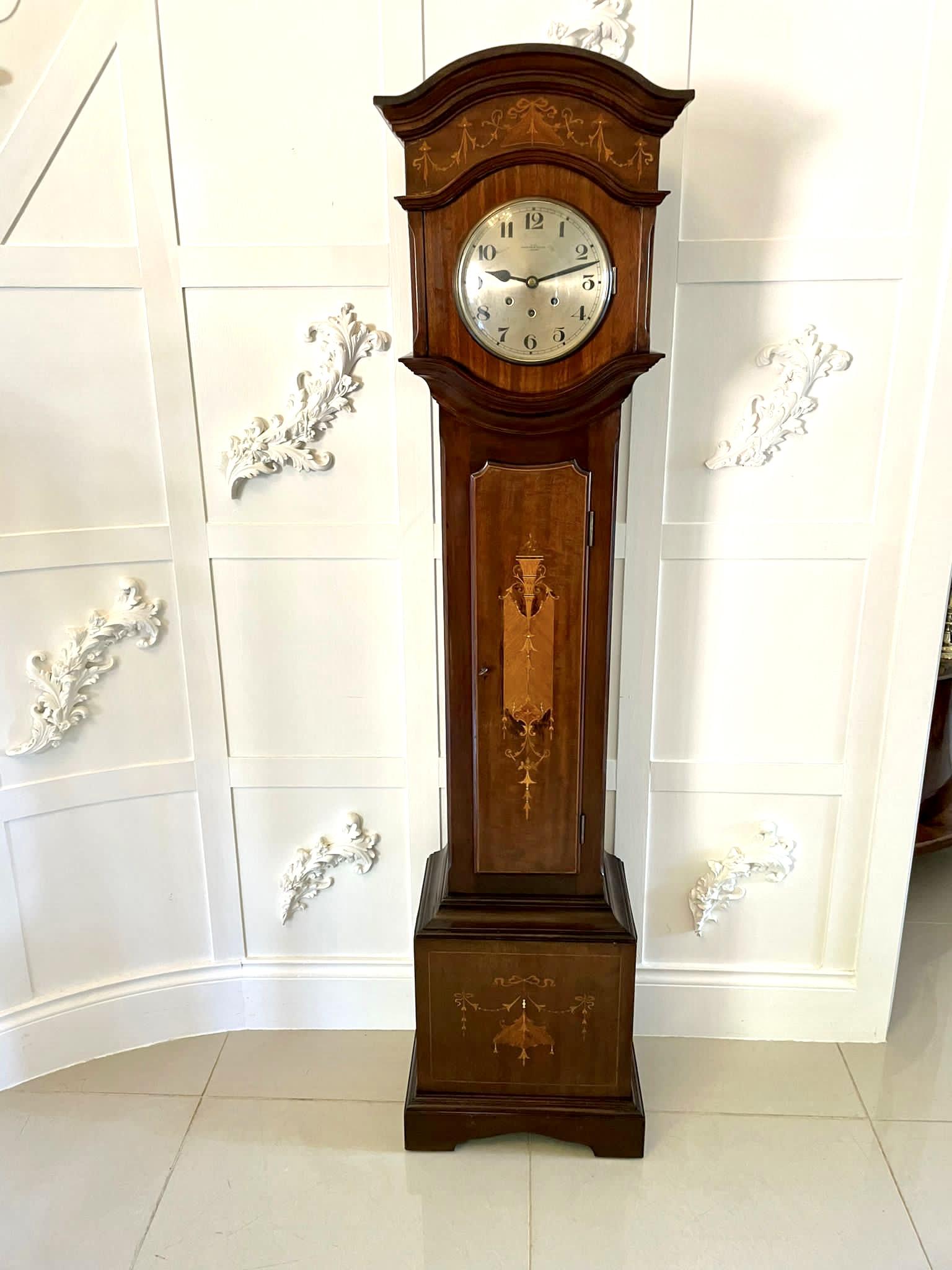 Unusual Antique Edwardian Quality Mahogany Marquetry Inlaid Grandmother Clock