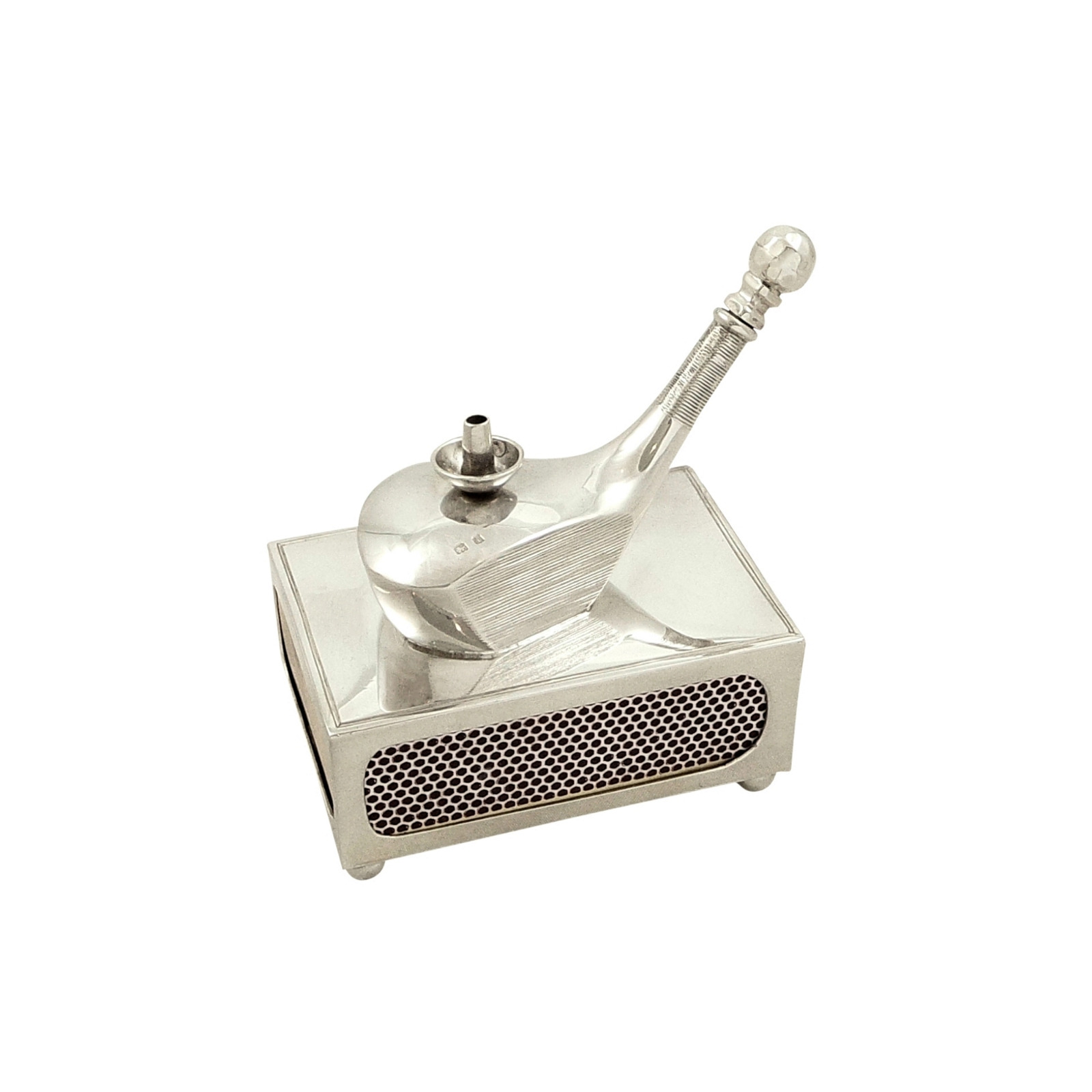 Unusual Antique Edwardian Sterling Silver Golf Club Match Holder & Lighter 1908