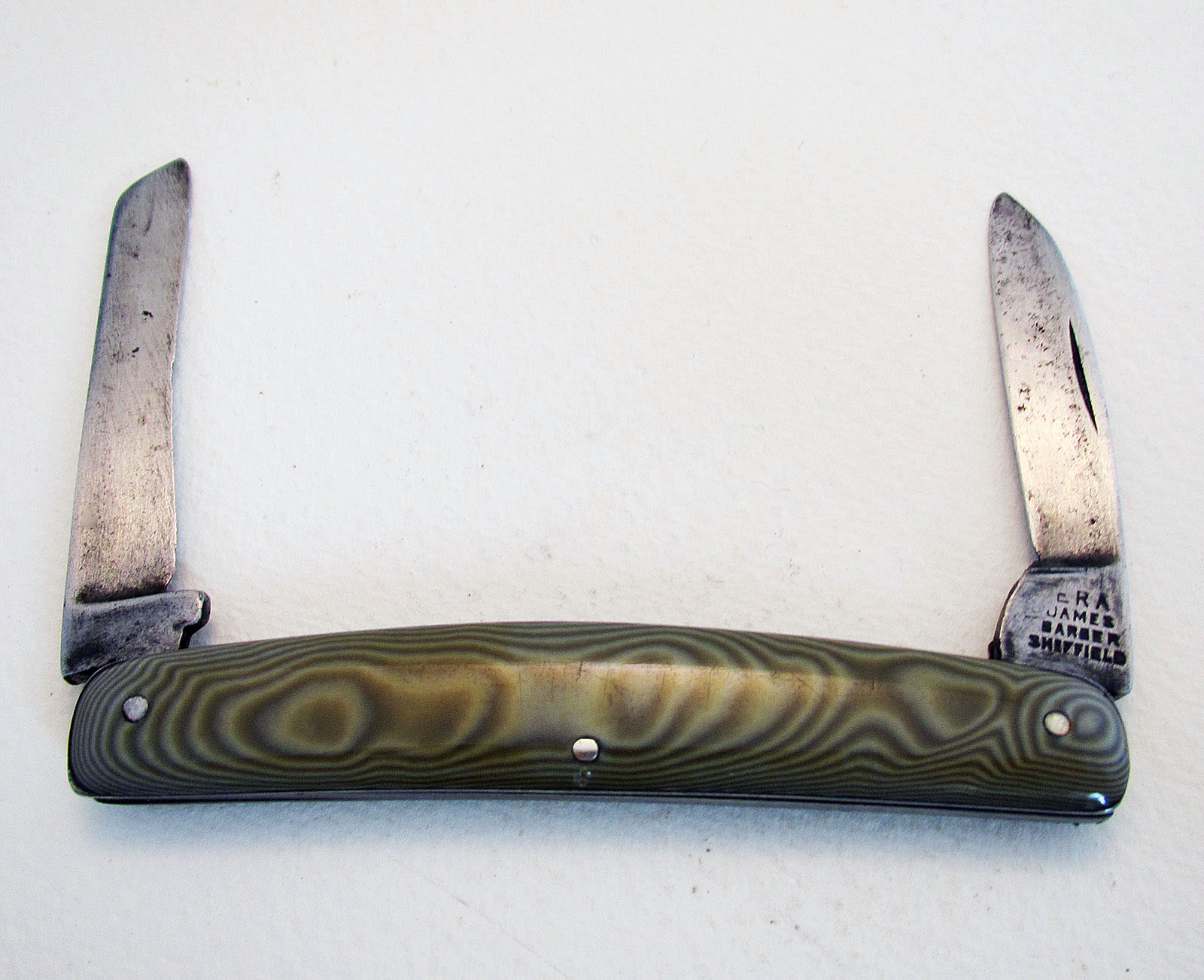 Unusual Antique Era James Barber Sheffield Carbon Steel Double Folding Knife Fruit Penknife c.1910