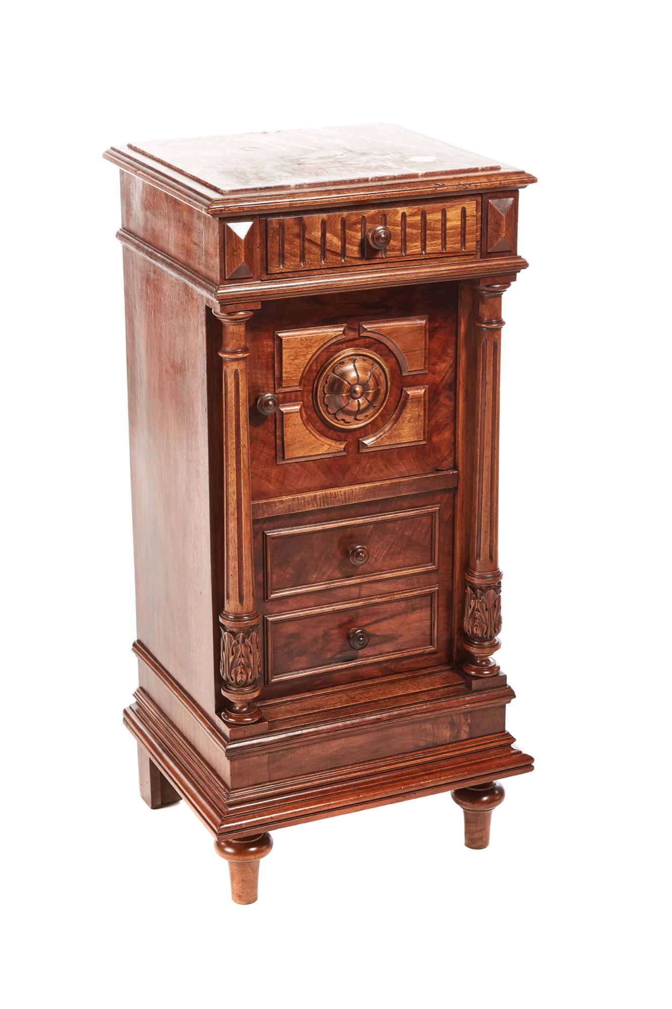 Unusual Antique French Walnut Bedside Cabinet / Nightstand