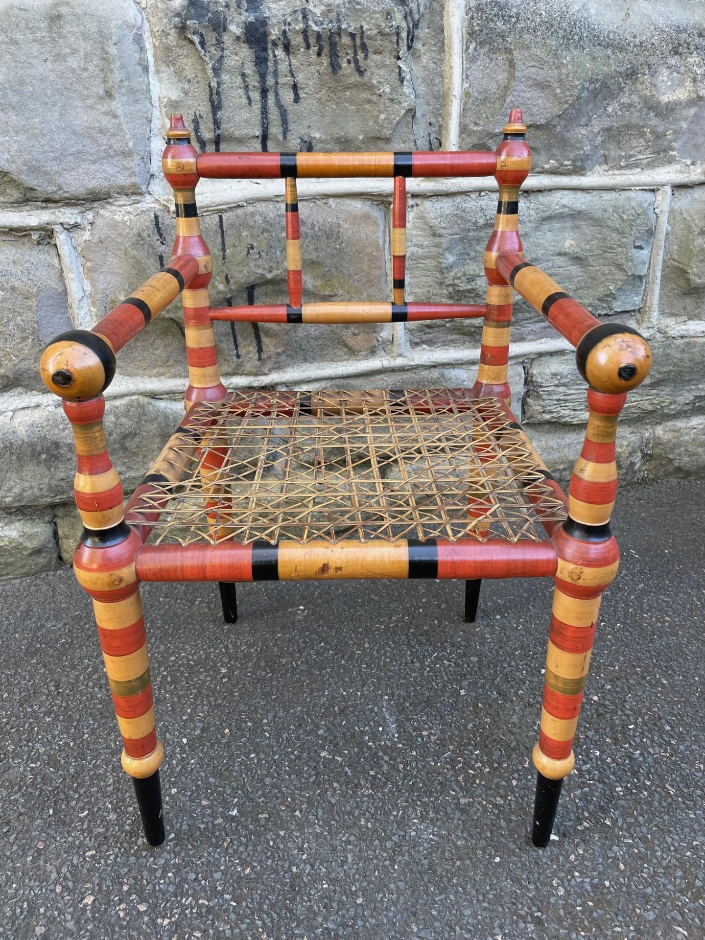 This Unusual Antique Painted Bobbin Turned Armchair is located in West Yorkshire, United Kingdom