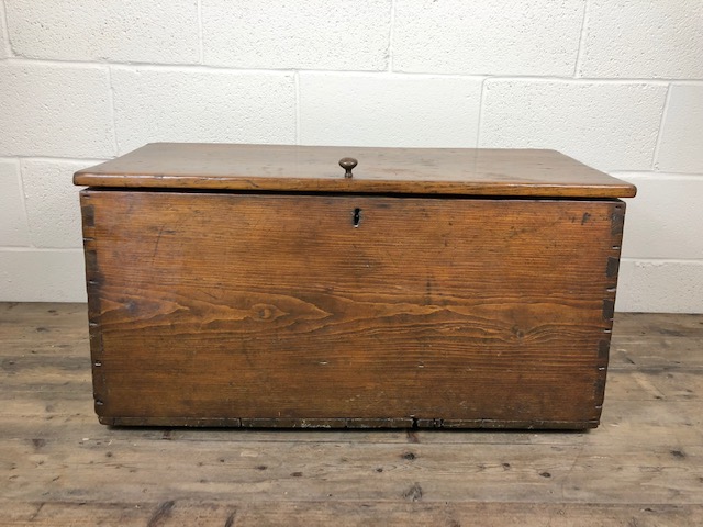 Unusual Antique Pine Sea Trunk Chest with Rope Handles (1 of 1)