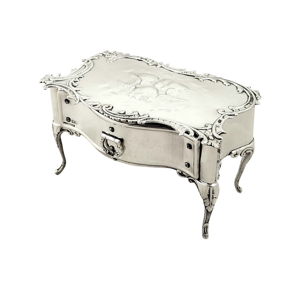 Unusual Antique Sterling Silver 'Table' Trinket Box - Choir of Angels