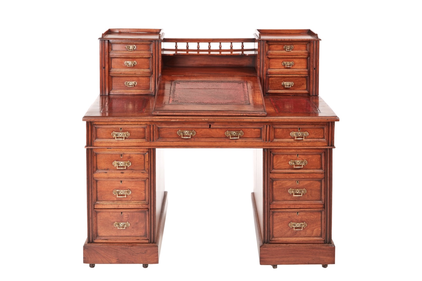 Unusual Antique Walnut Freestanding Pedestal Desk