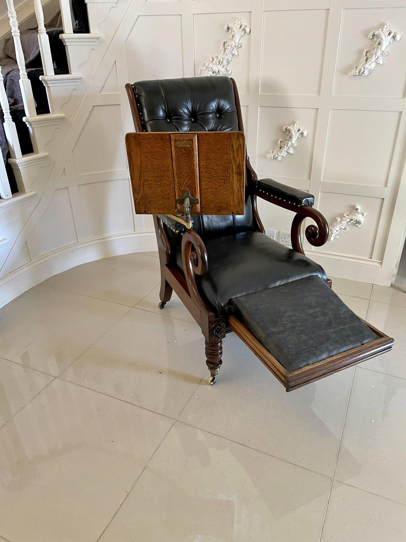 Unusual Antique William IV Quality Mahogany & Leather Reclining Library Chair