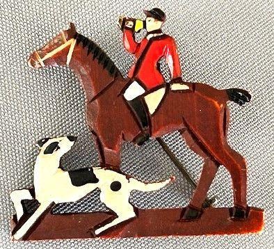This Unusual Art Deco Celluloid Hunting Brooch is located in Suffolk, United Kingdom