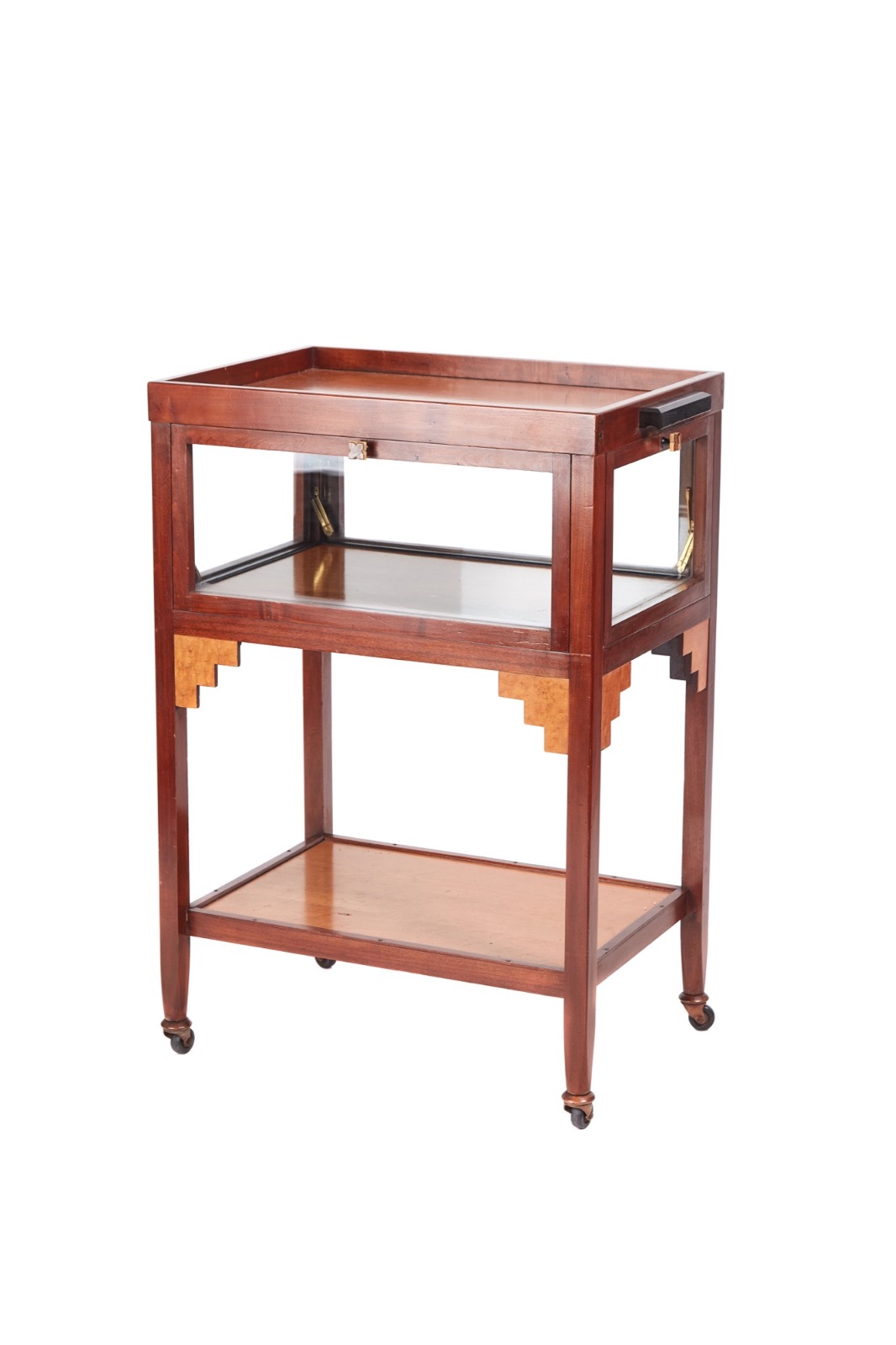 Unusual Art Deco Walnut & Birdseye Maple Cocktail Trolley