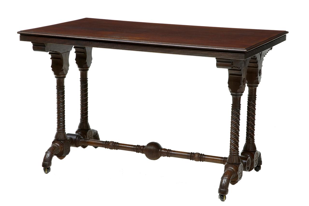 Unusual Arts & Crafts 19th Century Carved Walnut Library Table