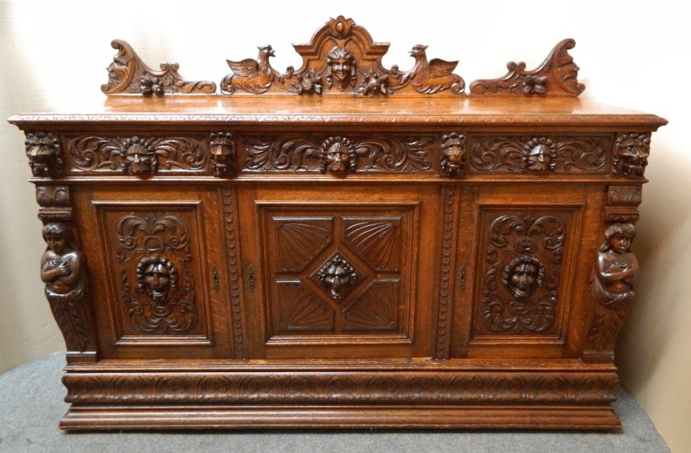 Unusual Carved Oak Cupboard / Sideboard c.1880