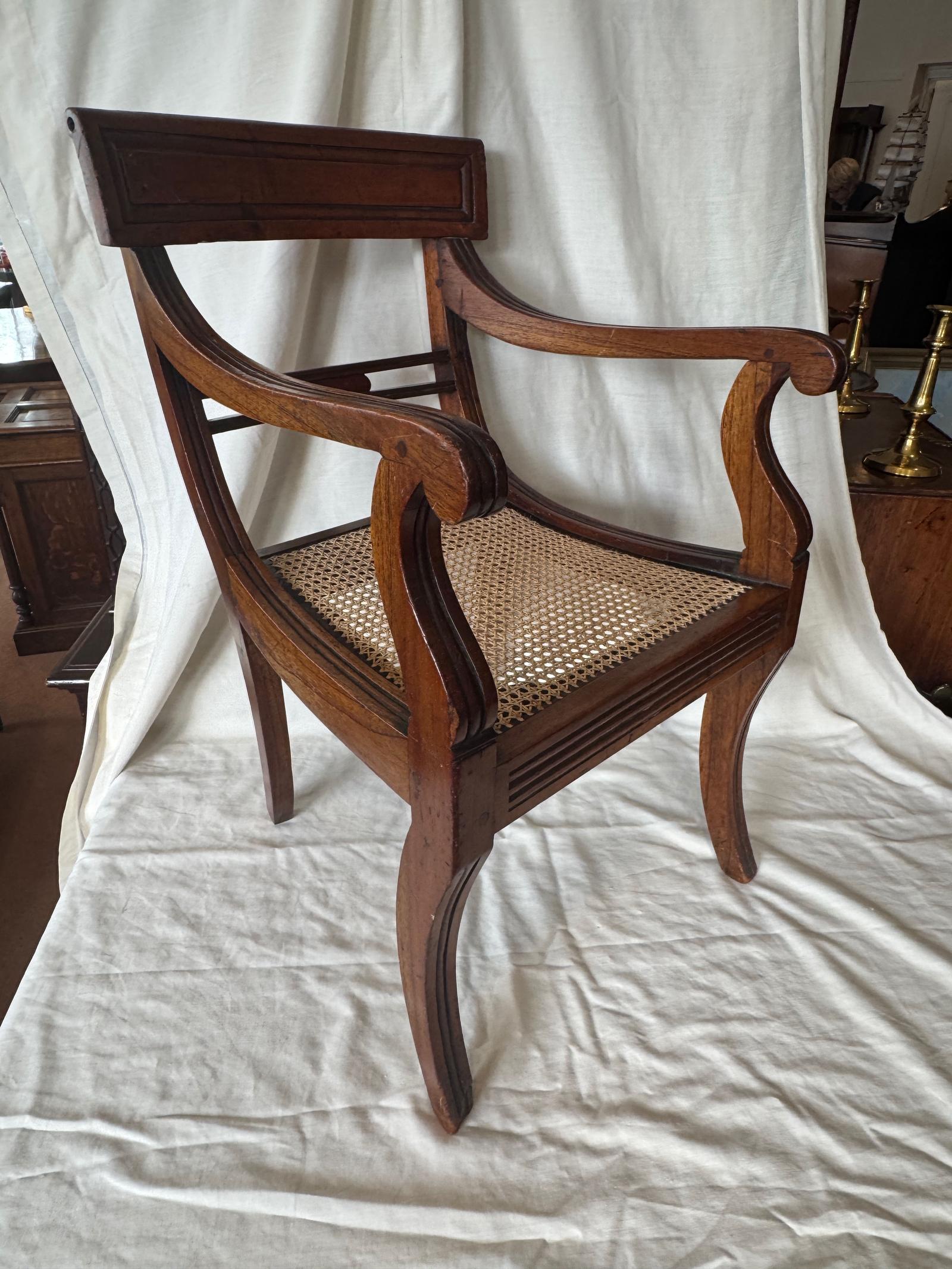 Unusual Regency period child's chair in mahogany, dating to approximately 1820. It features a design characteristic of the Early 19th Century and is classified under the categories of chairs and child's chairs. The material used is solid mahogany, known for its durability and fine grain. Fine canework seat. Lovely condition and colour