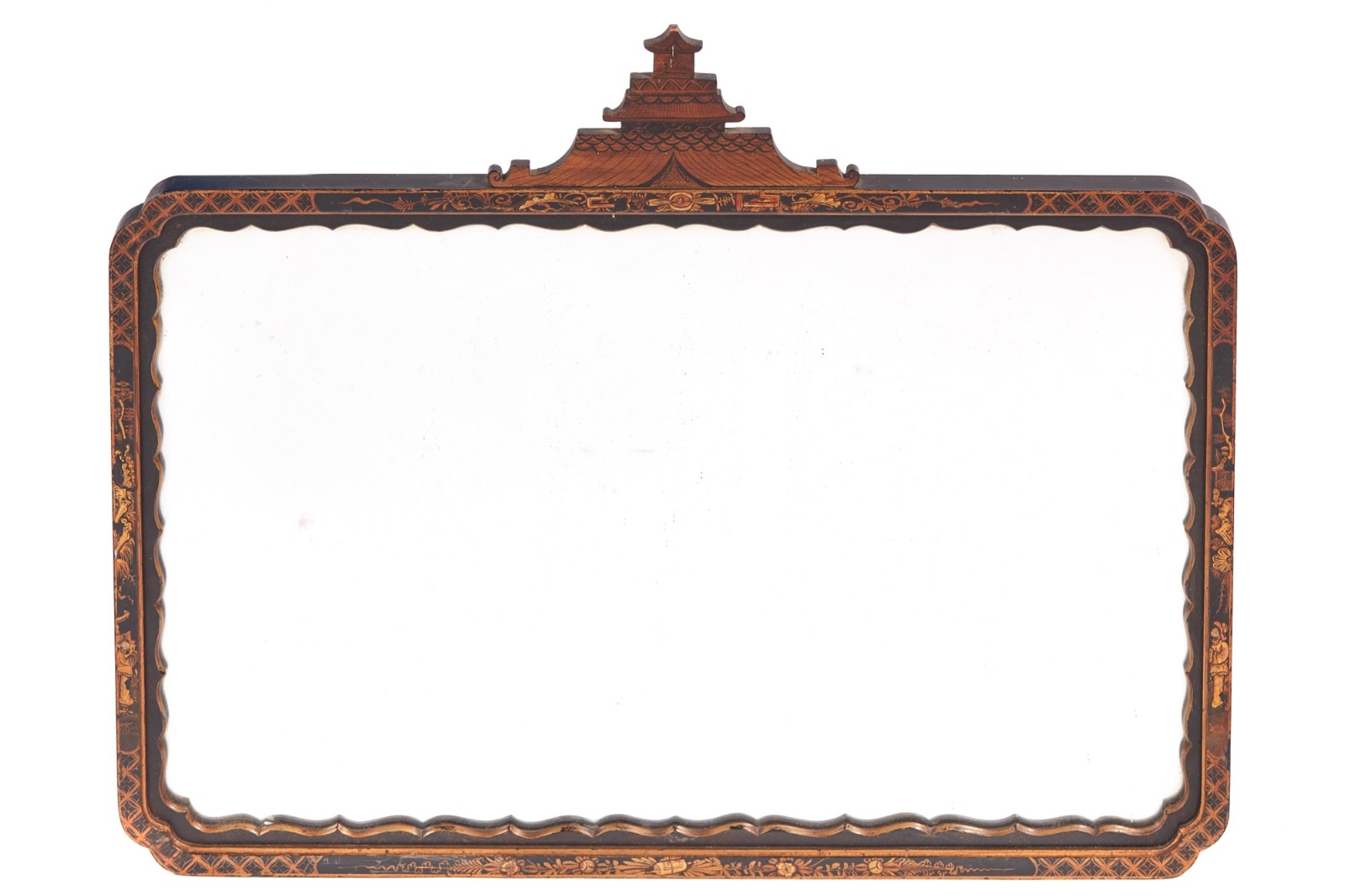 Unusual Chinoiserie Lacquered Decorated Wall Mirror c.1920