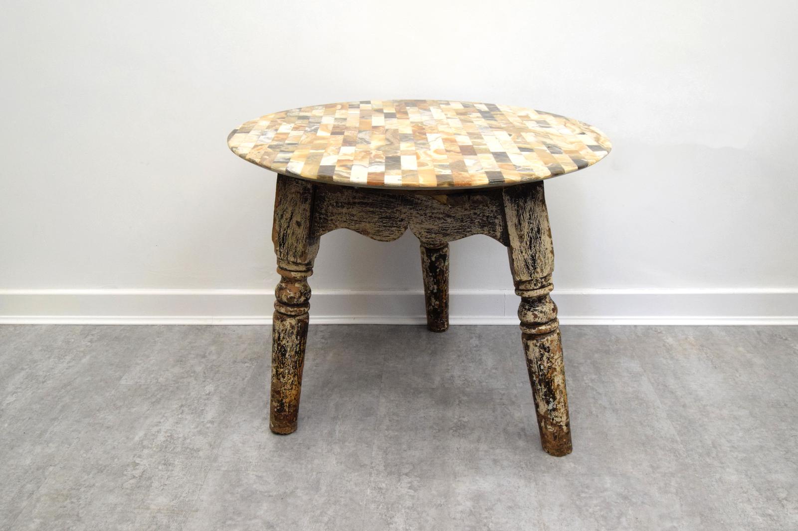 Unusual Circular Marble Topped Cricket Table with Original Paint