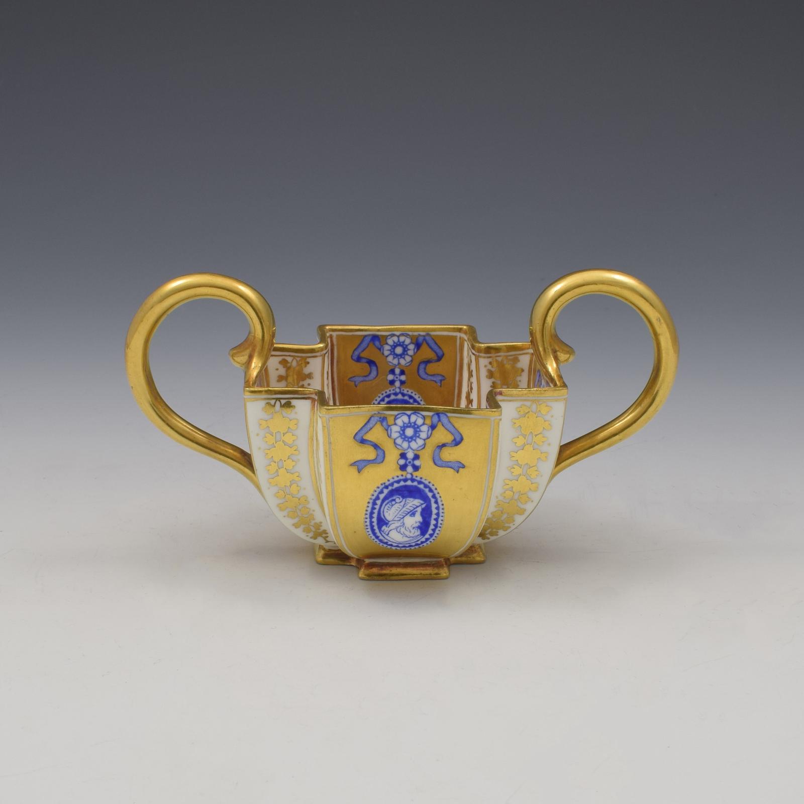 Unusual Coalport Porcelain Small Quatrefoil Sugar Bowl Gilt & Cameo Pattern A4846 c.1885 (1 of 18)