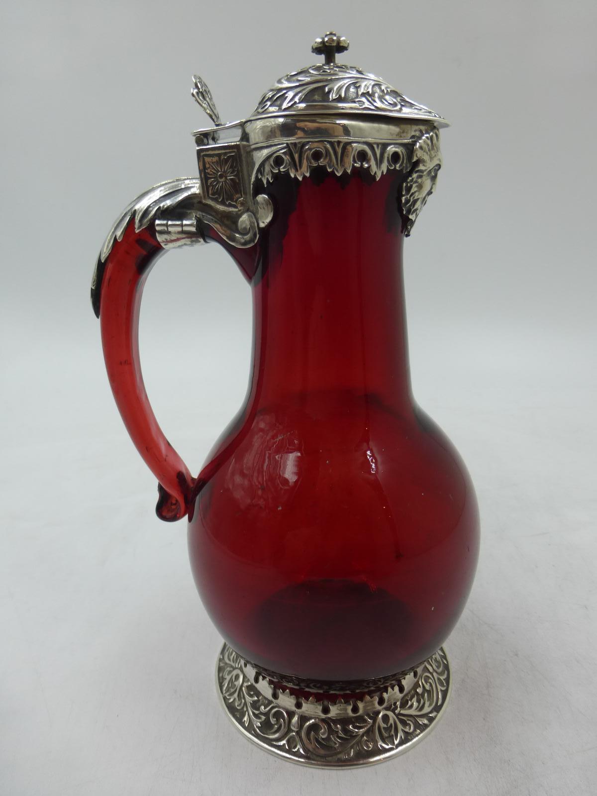 Unusual Continental Silver Mounted Ruby Glass Jug c.1870