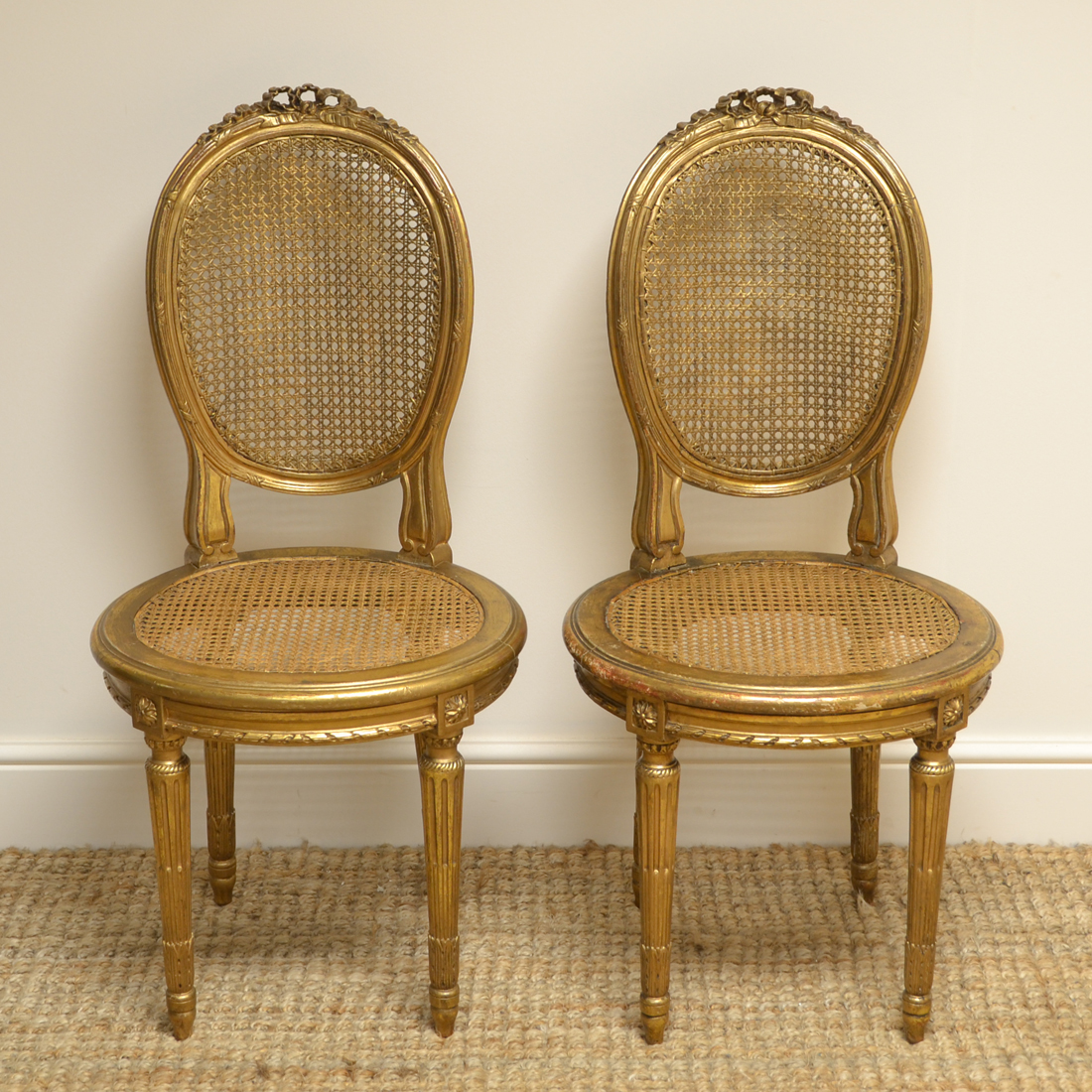 Unusual Decorative Pair of Victorian Antique Gilt Side Chairs