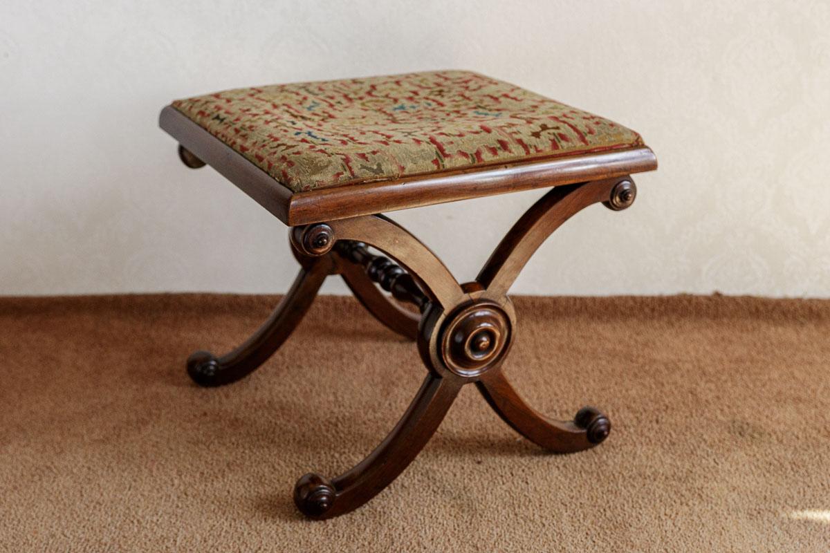 Unusual Early 19th Century Mahogany X Stretcher Stool