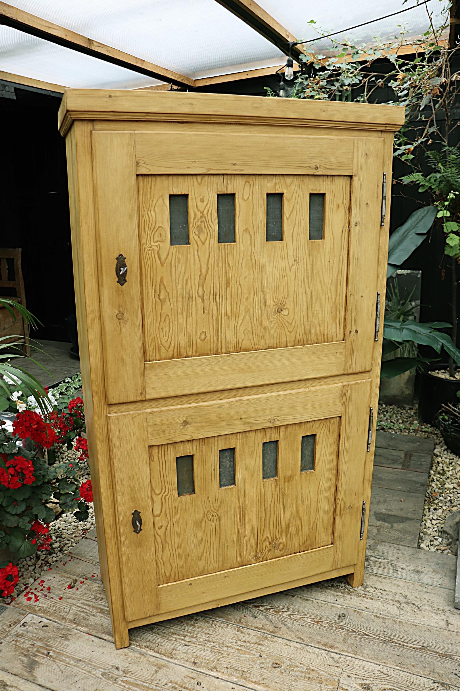 Unusual Early 20th Century Two Door Pine Cupboard - Linen / Larder / Storage