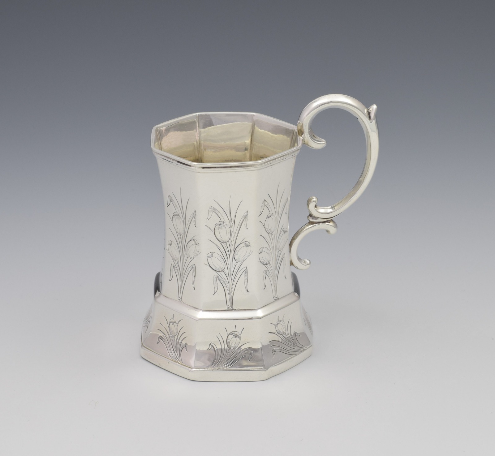Unusual Early Victorian Octagonal Silver Christening Mug