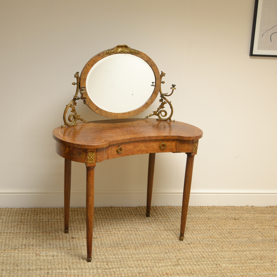 Unusual Edwardian Burr Maple Antique Dressing Table