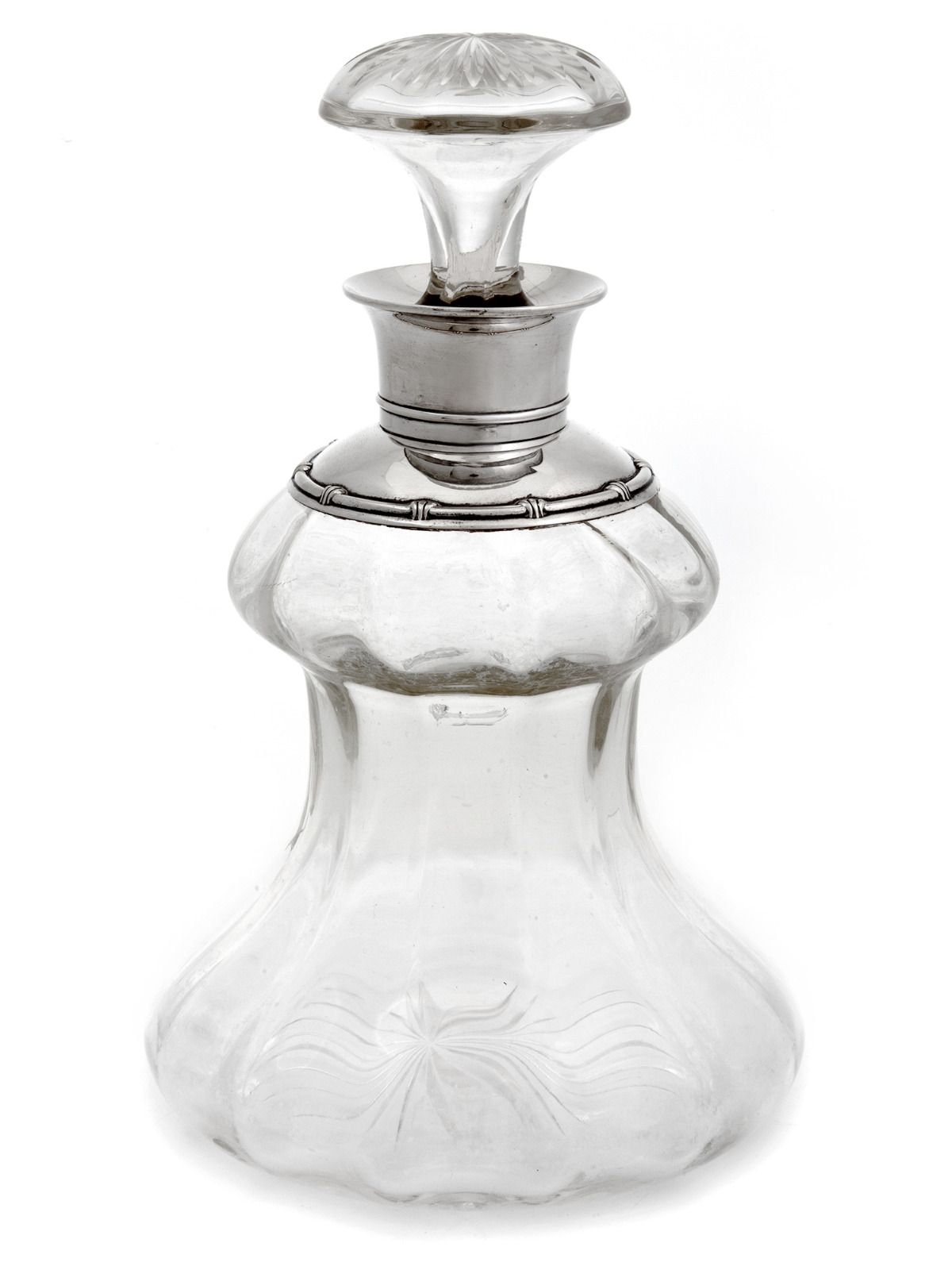 Unusual Edwardian Clear Glass & Silver Neck Decanter