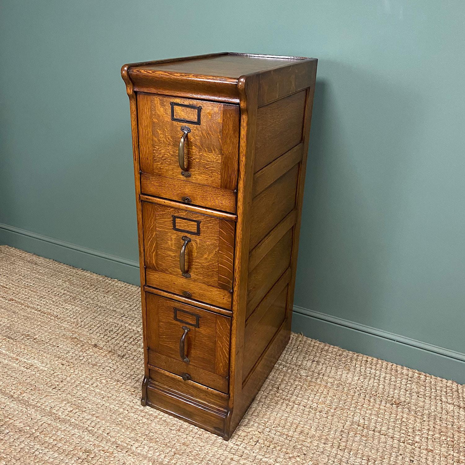 Unusual Edwardian Oak Antique Filing Cabinet