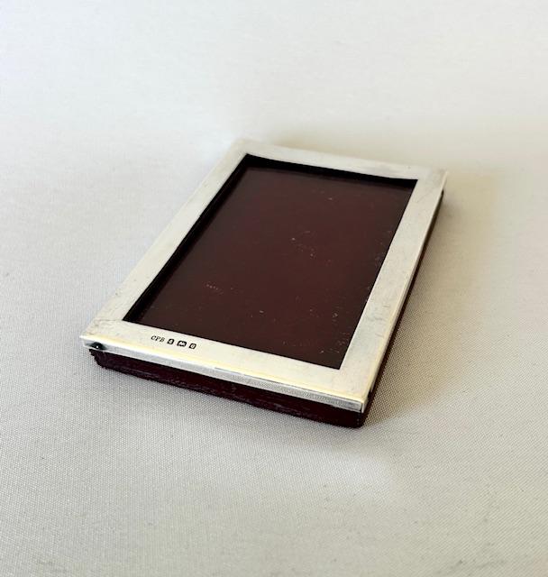 A most unusual desk paperweight, dating from the elegant Edwardian era. The body is weighted and has a faux leather exterior. The top has a hallmarked and glazed photo frame aperture of rectangular form. A rare and practical piece and a lovely gift idea.