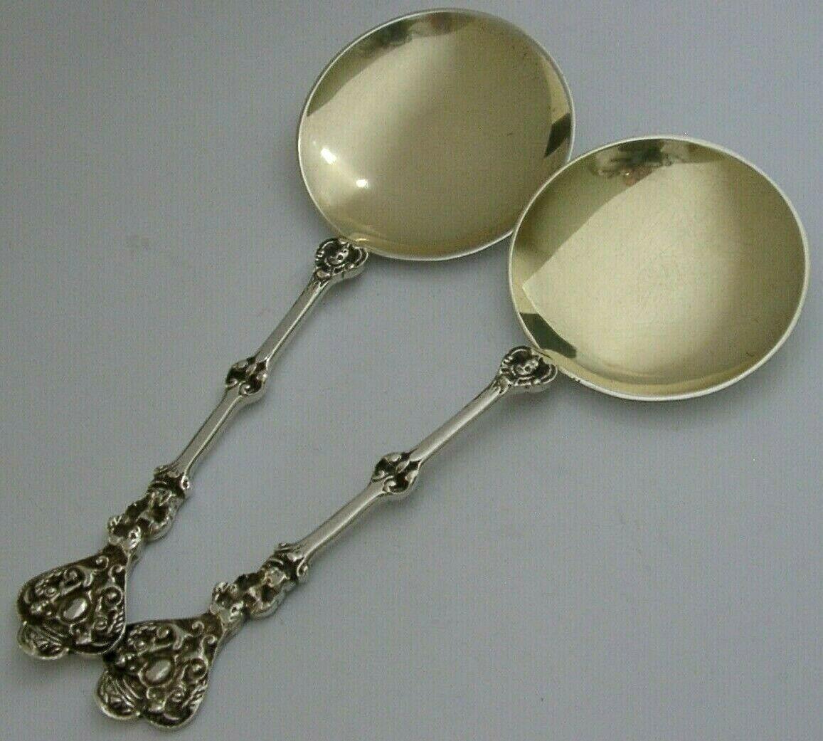 Unusual English Solid Sterling Silver Cherub Serving Spoons
