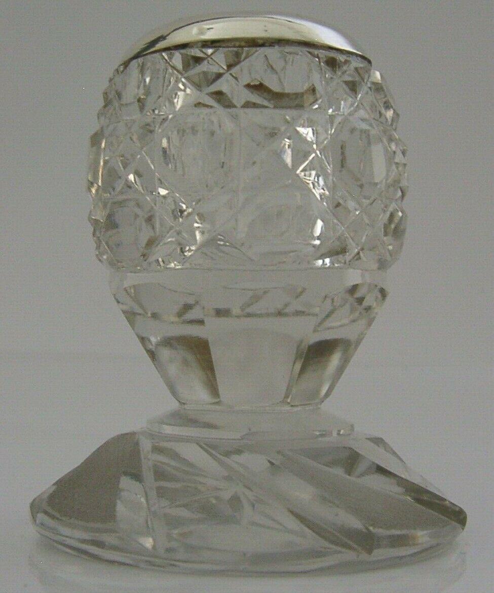 Unusual English Solid Sterling Silver Cut Glass Match Striker 1911