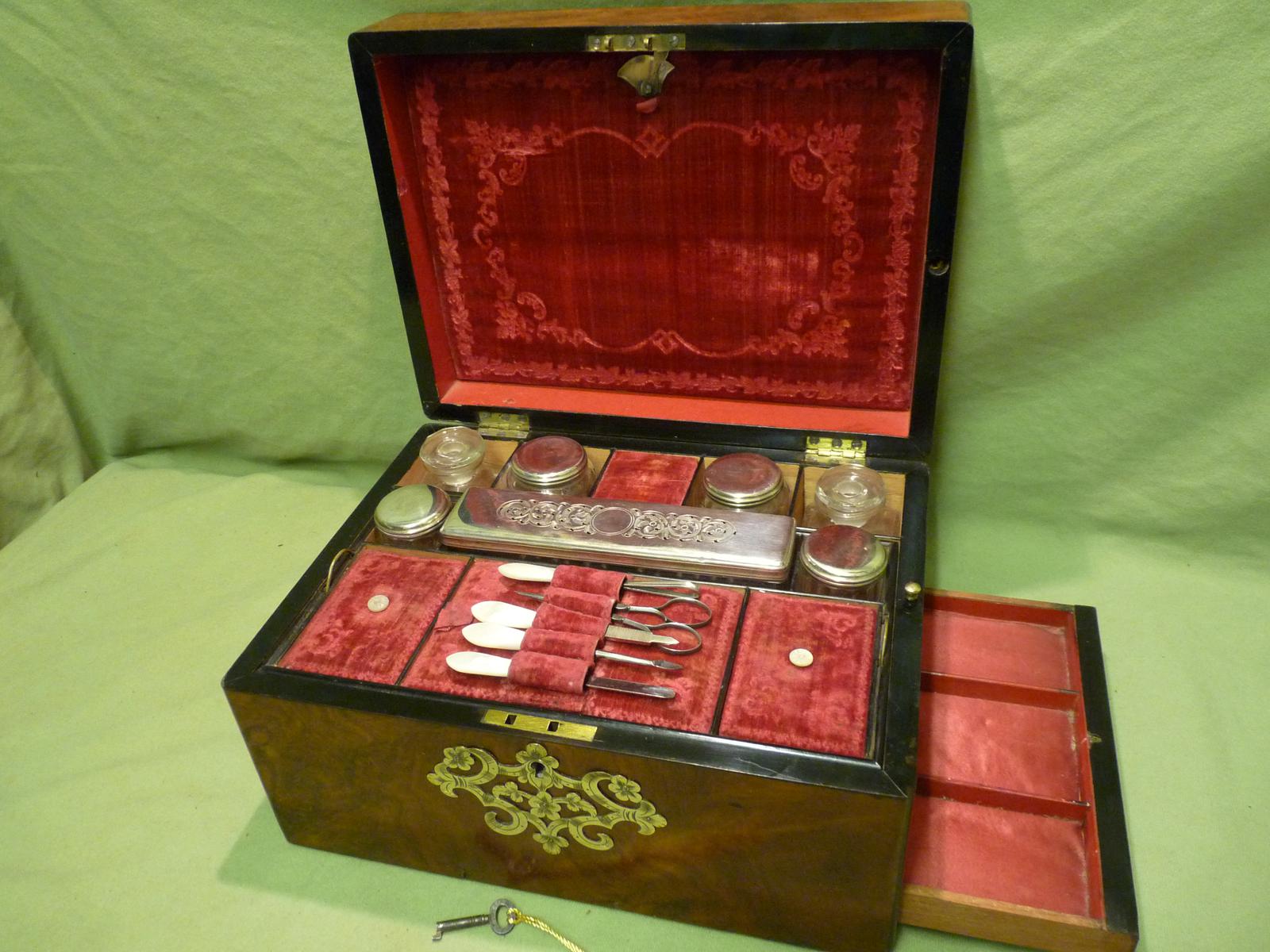 Unusual Figured Walnut Fully Fitted Dressing – Vanity – Jewellery Box c.1875