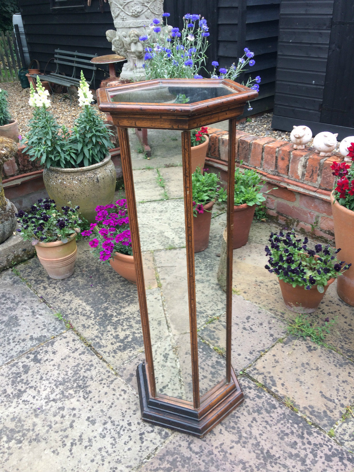 Unusual French Hexagonal Glazed Mirrored Stand c.1900