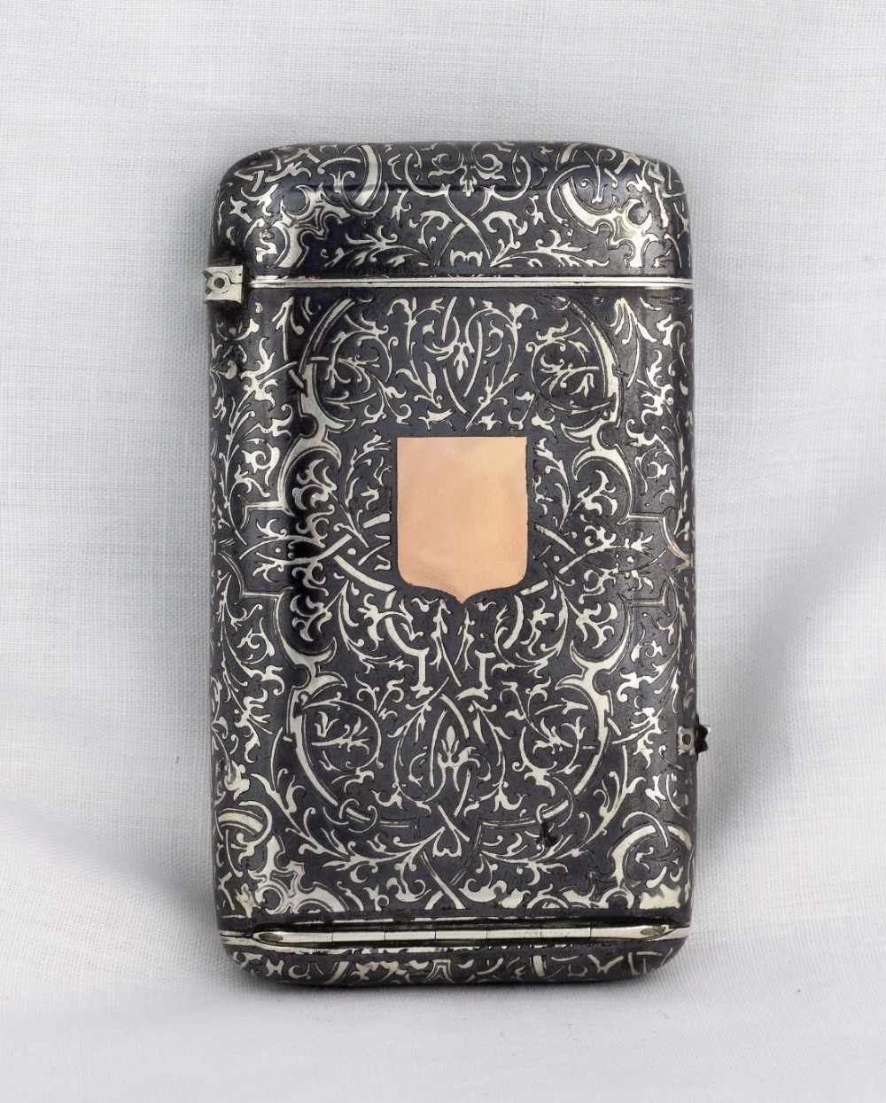 Unusual French Silver & Niello Cigarette & Vesta Case Concealed Tinder Cord